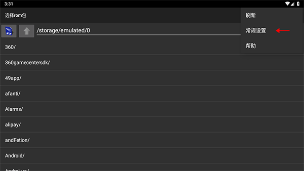 1、点击界面右上角的 三个点图标,然后选择 “常规设置” 进入设置菜单。