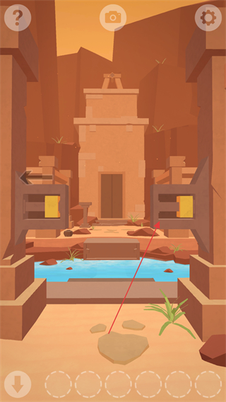 2、穿过有水的通道,探索新场景中的建筑和机关。