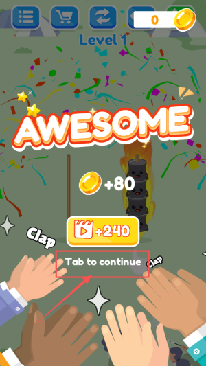 4、最后,完成关卡后点击“Tab to continue”按钮进入下一关。
