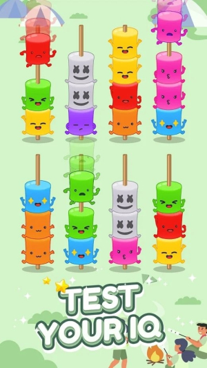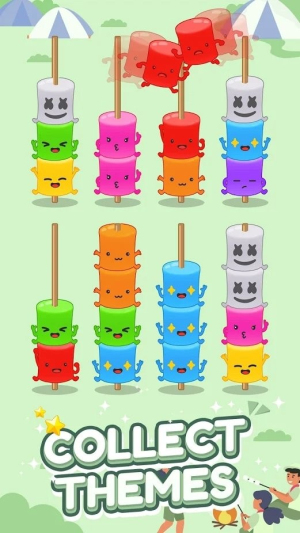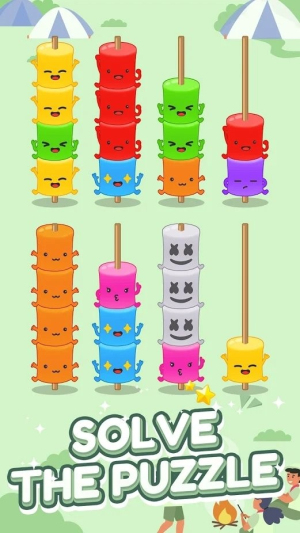 1、聚焦 “颜色排序 + 规划考验”:核心是 “移棉花糖、归同色、避卡顿”,特色在于 “轻操作 + 重逻辑”,区别于普通拼图游戏。