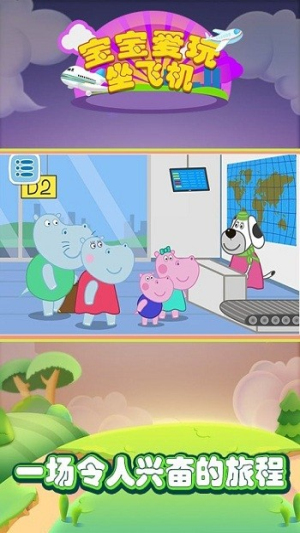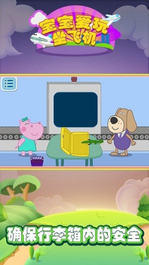 2、体验飞行流程:跟随河马宝宝完成机场流程(如值机、安检),在过程中学习对应的航空注意事项,通过互动加深记忆。