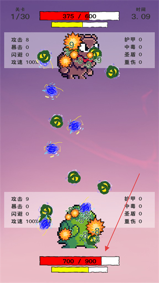 4、击败怪物后,进入下一关,继续挑战更强敌人。