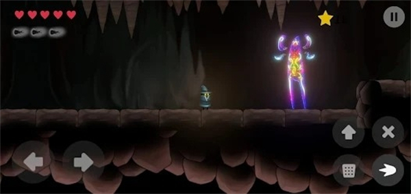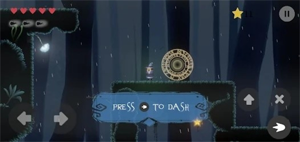 4、让角色触碰发光的圆形机关,触发机关后继续探索新区域。