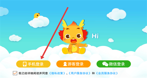 1、在小伴龙海洋世界的“隐私政策”弹窗点击“同意”,进入登录方式选择页面。