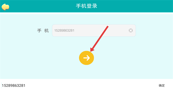 3、在手机登录界面输入手机号码,点击黄色箭头按钮,进入验证码输入页面。