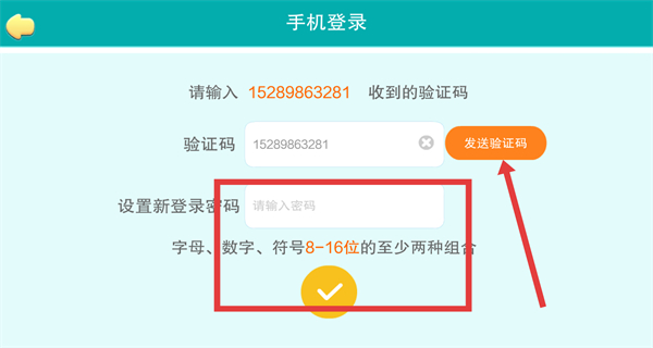 4、在验证码输入页面点击“发送验证码”,输入收到的验证码并设置登录密码,完成账号登录流程。