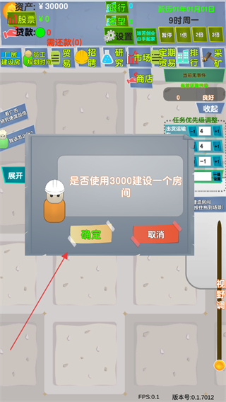 3、在工厂建设环节,根据提示使用资金建设房间,点击确定完成建设,逐步搭建工厂设施。