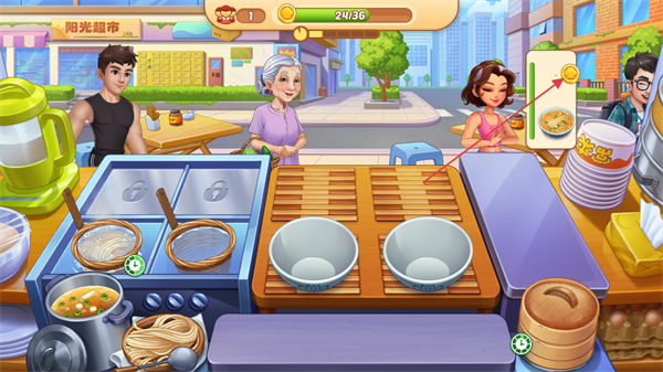 4、完成顾客订单后,获得金币奖励,积累金币可升级店铺或解锁新食材。