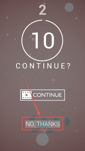 4、最后,游戏结束后,选择“CONTINUE”继续游戏或选择“NO, THANKS”结束游戏。