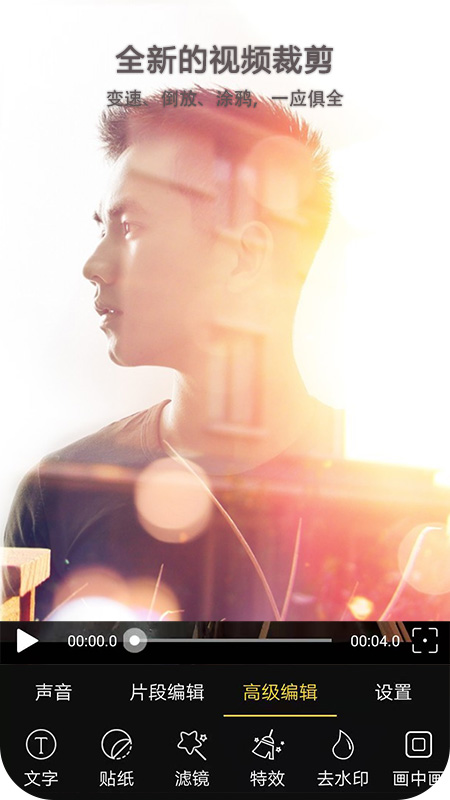 2、超强大的视频编辑工具,内置大量素材,任何人都是可以自由编辑。