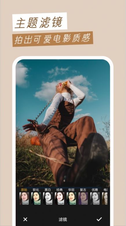1、主题滤镜,打造可爱的电影质感,丰富的滤镜素材会不断更新,方便选择。