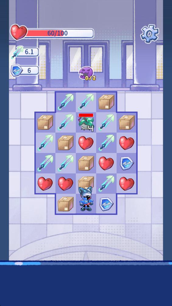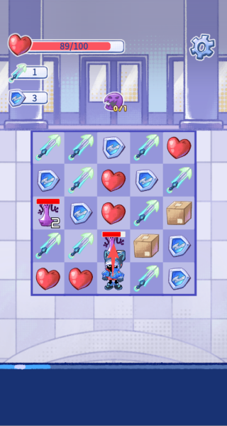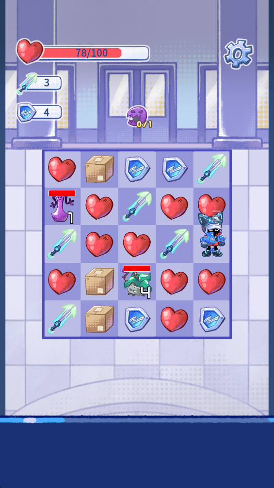 格格大厦是一款融合了策略、消除与RPG战斗元素的创新冒险游戏,通过控制角色在方格棋盘上的移动,来触发三消连线,而不是简单的符号滑动。你需要在战斗中巧妙规划每一步的走位,将攻击、防御和生命符号进行有效组合,从而发动连击,击败大厦中的怪物。每一个房间都充满了敌人和挑战,只有精准的战术与技能运用才能带来胜利。