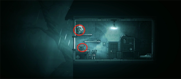 3、流浪者视角。往左走到房子前松动的木板上,站在木板上跳几次,破坏木板,从木板下的坑道爬进房子,获得镰刀。然后推开房门出去,砸死门外的黑色怪物。