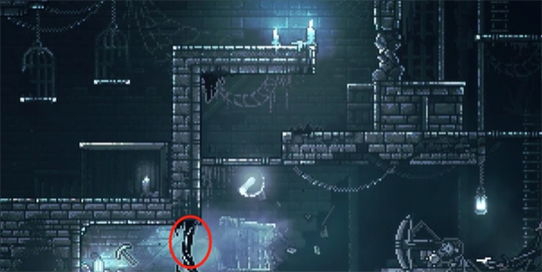 12、爬上吊灯右边的平台,柱子会断裂,把之前推断的柱子推过来修复平台,从平台往左跳过去,获得钥匙。