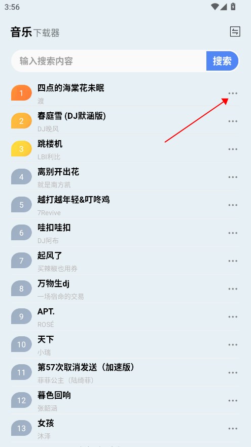 1.选择一首喜欢的歌曲。点击右侧的三个点。