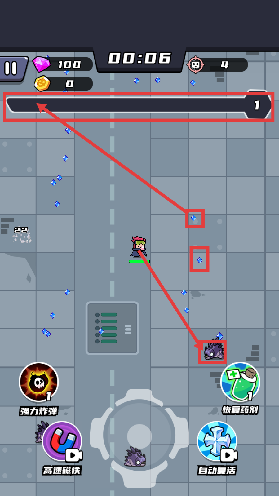 2、战斗中收集钻石,关注进度条,击败怪物推进关卡,提升游戏进度。