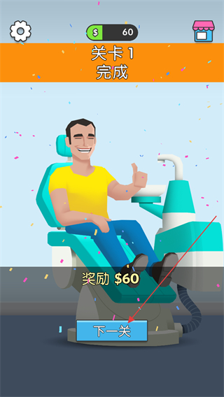 治疗完成后病人会展现满意表情,配合关卡评分系统,即时反馈治疗成果,带来清晰的职业成就感。