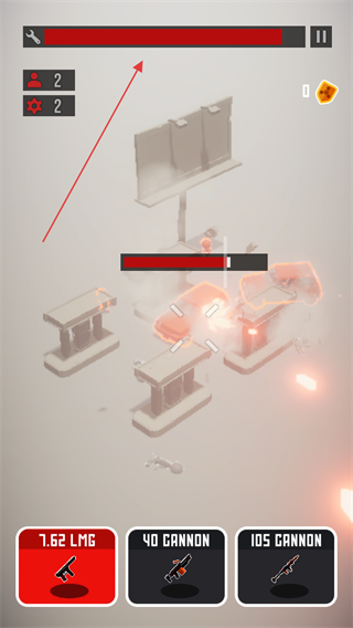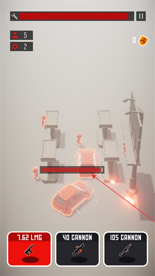 采用红色火柴人小兵与白色建筑的搭配,三维画面升级后视觉更清晰,场景无冗余装饰,让注意力聚焦于射击与战术布局。