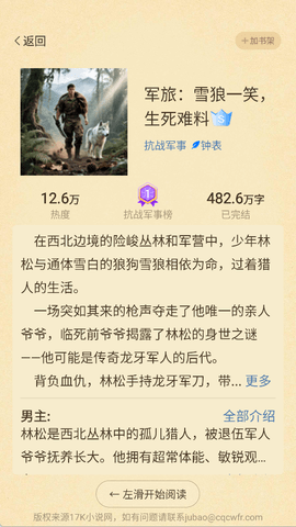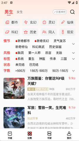 2、场景中的作品都是全网最新、最全、免费的小说题材,用户根据简洁可以了解书籍内容。