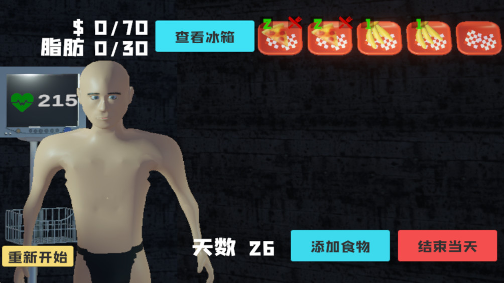 2.点击添加食物,右上方就会有很多食物,自动喂食给这个人。