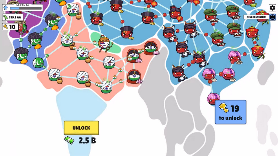 国家球世界连接是一款结合战略思维、外交博弈与历史回溯的全球战争模拟游戏,通过独特的球形国家角色设计,使得每个国家既富有个性,又便于辨认,带来视觉上的清新感和趣味性。玩家不仅需要在全球地图上进行军事扩张,还要运用战略眼光布局经济、外交和军队力量。通过与其他国家的互动,你将参与到一场场复杂的外交谈判中,选择联盟或是敌对,制定军事计划、管理资源,并逐步提升自己的国力。