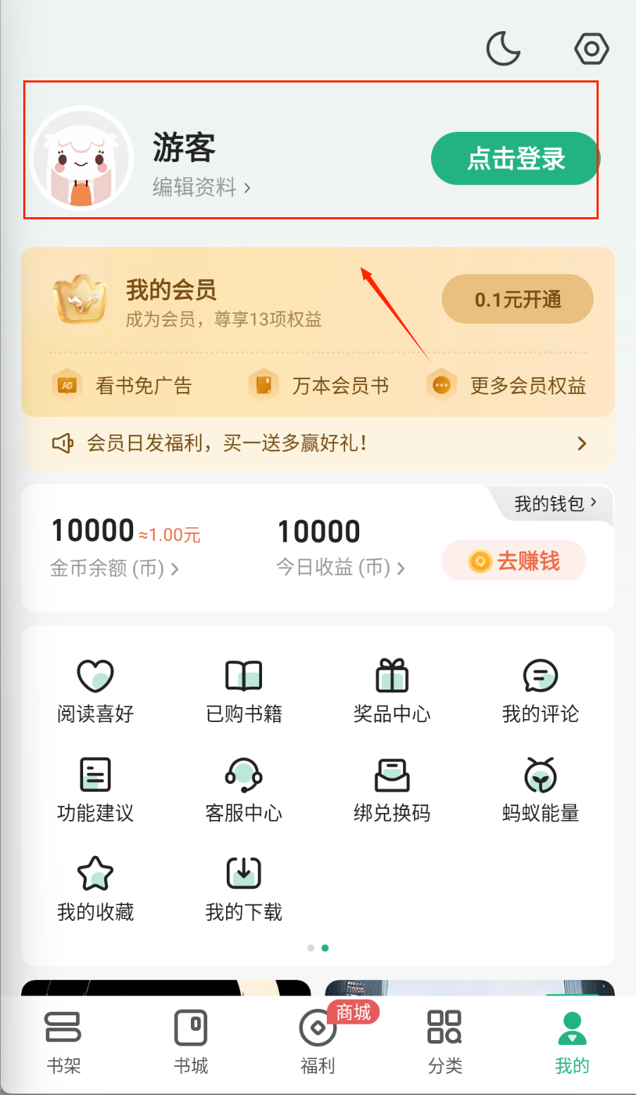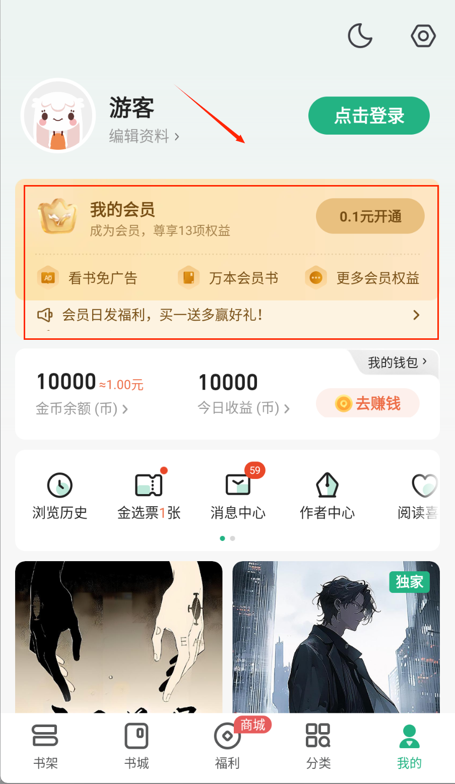 3、考虑花0.1元开通会员很值得,在“我的会员”处开通后即可去除广告干扰,还能免费阅读大量会员专属书籍,显著提升阅读体验哦。