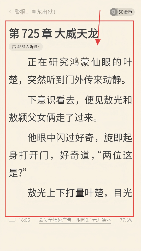 4、点击章节后,就会进入对应章节的阅读界面,能畅快阅读精彩内容啦。