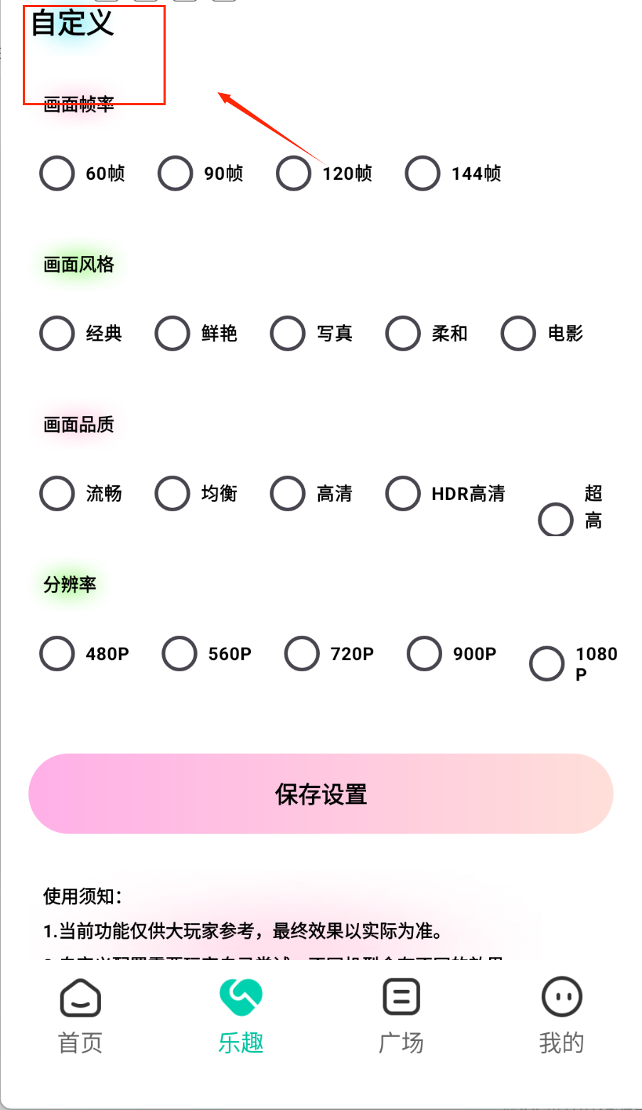 3、“自定义”设置里的选项很有讲究。例如,高帧率搭配高清品质会更流畅清晰,但可能耗电;低分辨率搭配流畅品质则能节省资源。
