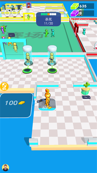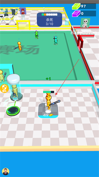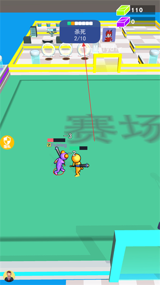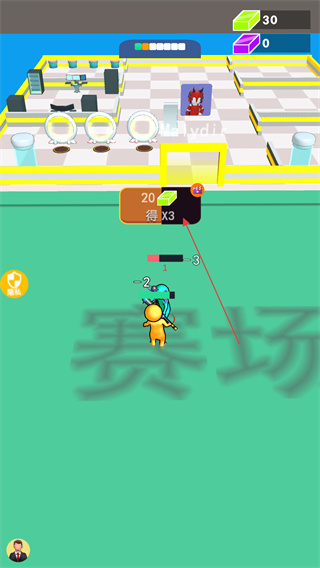 1、操控火柴人攻击其他对手,击败敌人可获得绿色方块资源,积累资源提升实力。