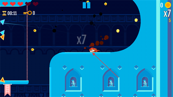 3、遇到敌人时,利用地形和走位发起攻击,击败敌人可获得连击计数如x7,提升得分。
