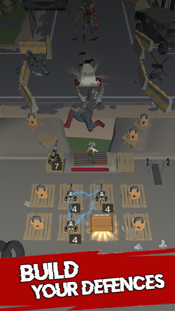 2、合并炮塔:僵尸防御游戏内有许多防御工具和各种强大的枪支。