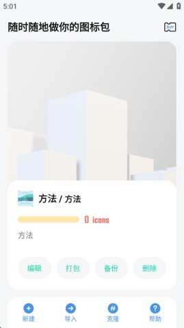 1、下载安装并进入做你的图标包app,新建图标包。