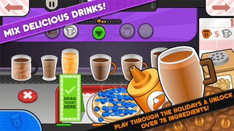 在饮料环节,如果使用错误的杯子尺寸、饮料或者添加物会扣分,点击倾倒按钮时计量器圆点没有居中也会扣分。
