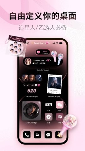 支持调整组件大小、间距、布局,可自定义字体颜色、背景等个性化参数。用户还能上传照片制作桌面组件或应用图标,打造专属桌面主题。