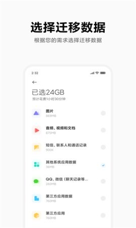 小米换机app作为一款由北京小米移动软件公司开发的免费数据互传软件,只需在旧手机和新手机双端安装该应用,然后通过扫码建立连接,即可快速将旧手机中的短信、通讯录联系人、相册、聊天记录、已安装的应用快速传输到新手机上,迅速完成数据迁移,欢迎下载使用。