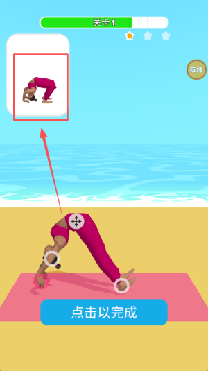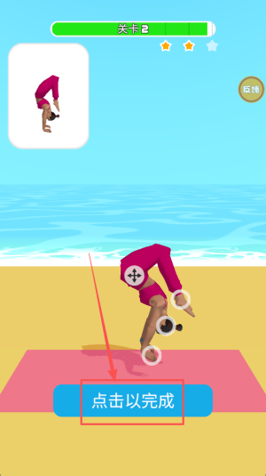 4、最后,完成动作后点击“点击以完成”按钮,进入下一关或完成当前关卡。