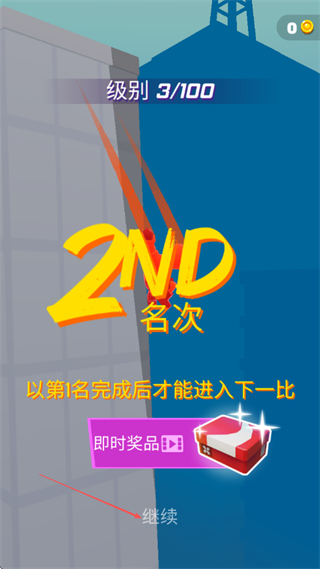 4、需以第1名完成比赛才能进入下一轮,可领取即时奖品,点击继续开启下一场跑酷。