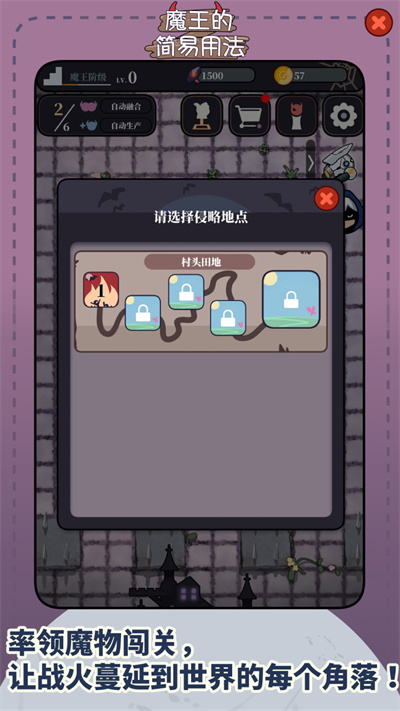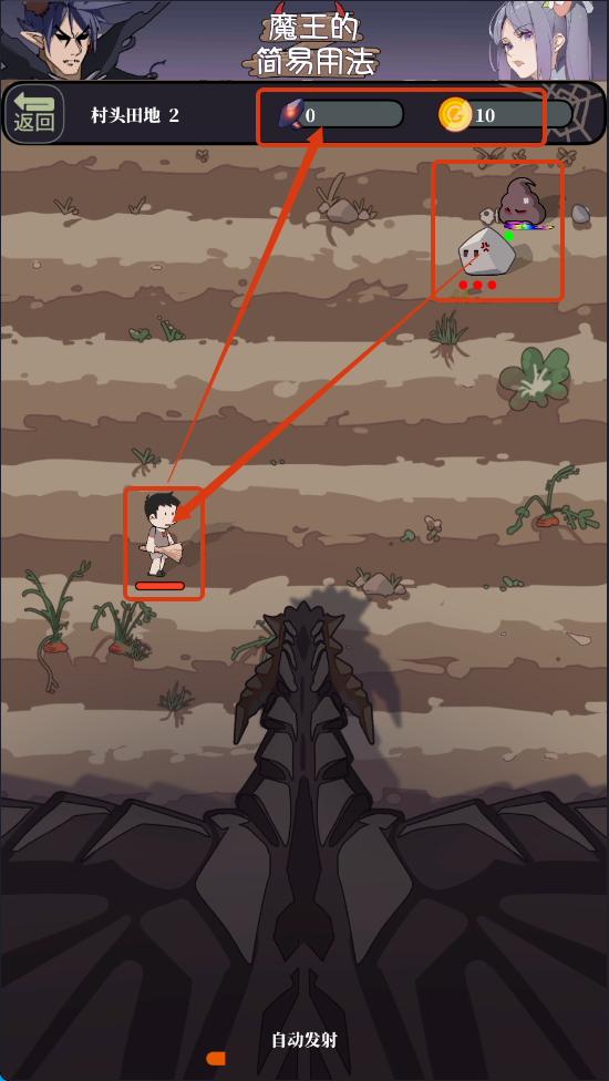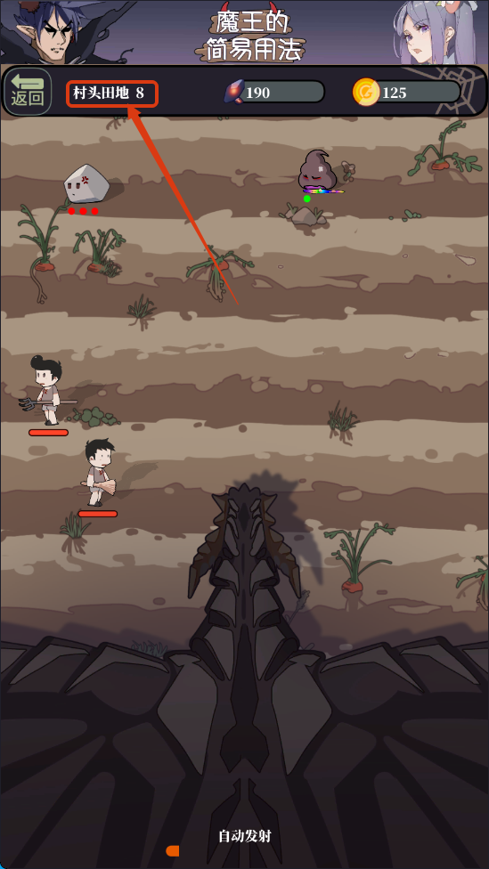 4、侵略至【村头田地-8】,持续攻击村民,积累更多资源,提升魔王阶级。