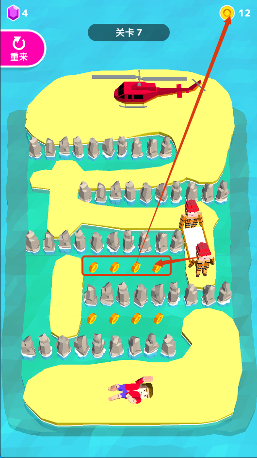 2、救援途中留意金币分布,顺路收集【金币】,提升资源获取,同时避开障碍,保障救援进程。