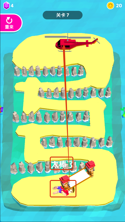 1、在关卡7,规划救援路线时,观察岩石分布,确保救援人员能安全抵达目标人物处,开启救援行动。