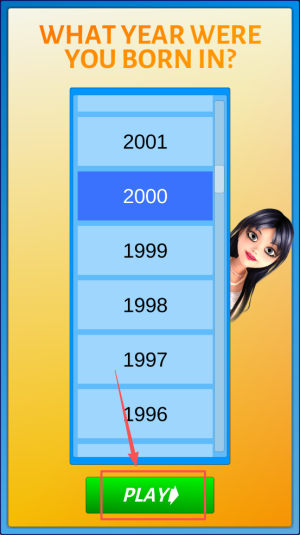 1、首先,选择你出生的年份并点击“PLAY”开始游戏。