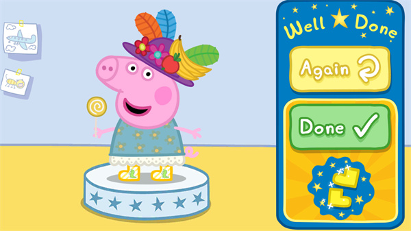 3、成就系统:小猪佩奇金靴子游戏设有成就系统,记录儿童在游戏中的成绩和进步,激励他们不断努力和进步,带给你更好的休闲玩法过程。