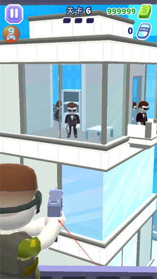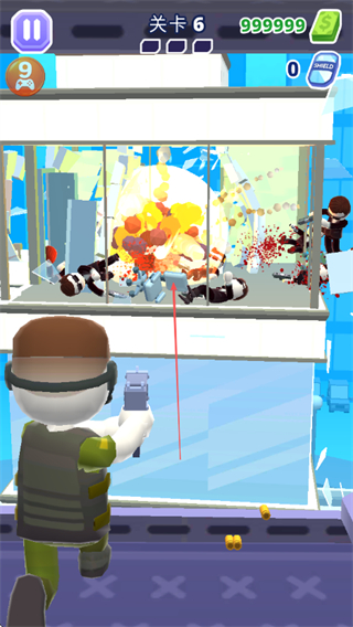 2、瞄准建筑内的敌人,精准射击,可利用爆炸效果一次性消灭多个敌人,实现高效清场。