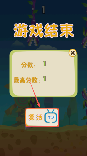 4、最后,如果游戏结束,可以选择“复活”按钮重新开始游戏或观看广告获得免费复活机会。