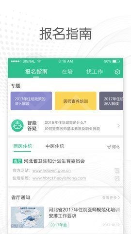 1、报名指南:汇集全国 31 个省级行政区住培基地的最新招录信息、考核大纲及政策解读,每日更新卫健委等官方资讯。支持按地域、专业等维度智能筛选,提供个性化报考建议。