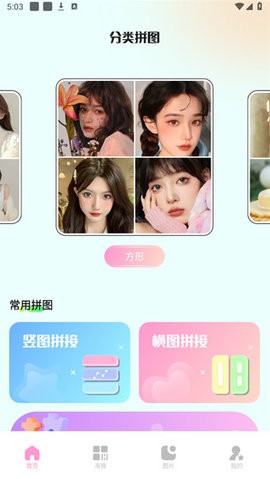 1、最高支持同时拼接15张照片,文字大小、字体样式、椭圆橡皮擦各种工具随你使用。