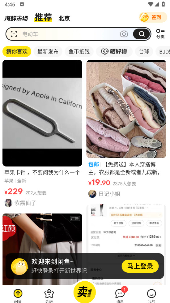 1、在本站下载闲鱼app,登录或注册一个账号。