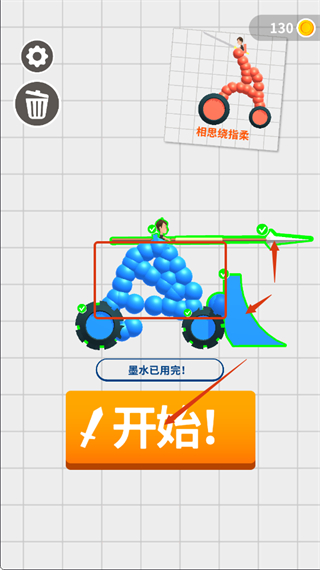 2、组装完成后,尽管【墨水已用完】,仍点击【开始!】按钮,开启对战环节。