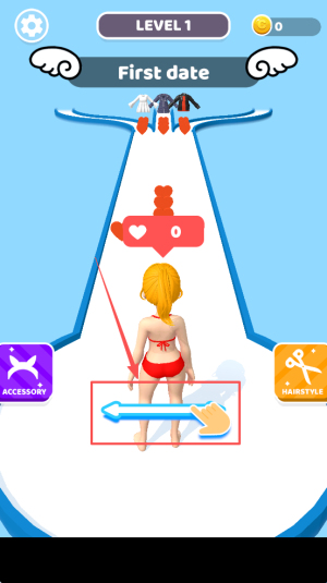 2、接着,根据游戏提示,滑动屏幕为角色选择合适的装扮。