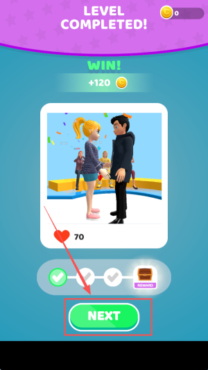 4、最后,当游戏关卡完成后,点击“NEXT”按钮继续下一关或查看结果。